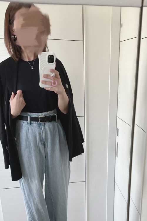 生地感がしっかりしていて落ち着いた色味が多いから、若い人が着ると少し老けて見えることもありますが、30代後半からはちょうどいいバランスになります