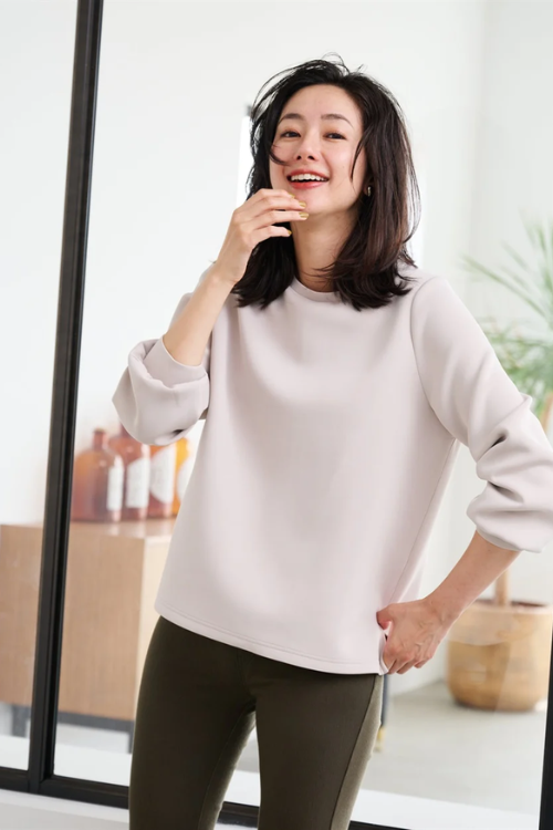 着こなしやすいシルエットと着心地で、日常になじむような品の良さが際立っています。