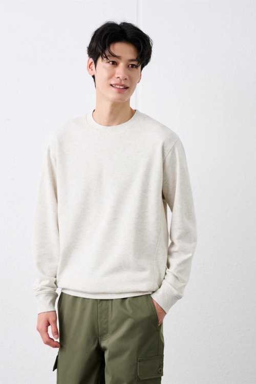 保湿成分を繊維に施したしっとりした着心地が魅力の、ピースフィットウォーム長袖Tシャツ(税込 858円)です。