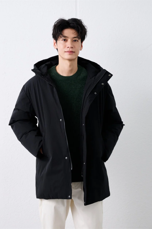 首元まで暖かいハイネック仕様で、防寒性と着やすさを両立している便利な1着。