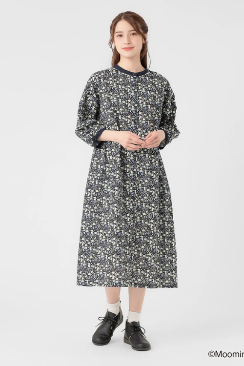 フリル加工を施した首元や袖口、裾が上品で、4色展開でシーンによって選べる華やかなアイテムです。