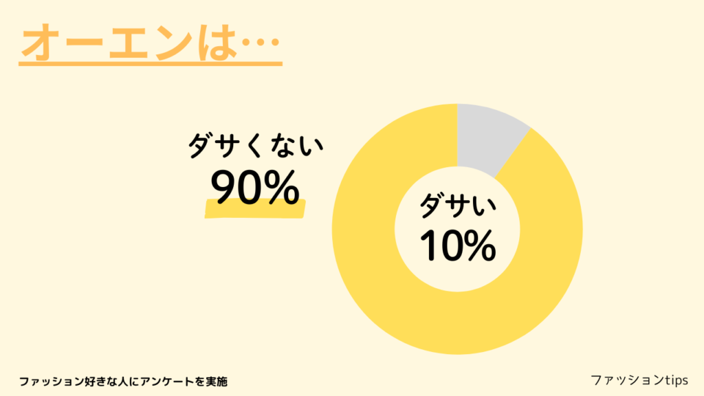 その結果、9割の人がダサくないと回答していたことから、ダサいという批判はほとんど気にしなくてよさそうです。