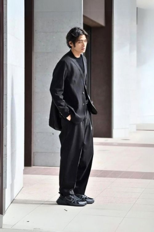 モードな雰囲気のオールブラックコーデは、スニーカーをあわせてキメすぎないアクティブさがプラスされています。