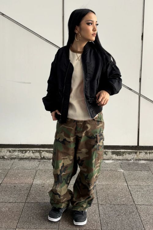 ミリタリー系やストリート系の印象が強いけど、シンプルなコーデに取り入れれば、トレンド感ある着こなしにも。