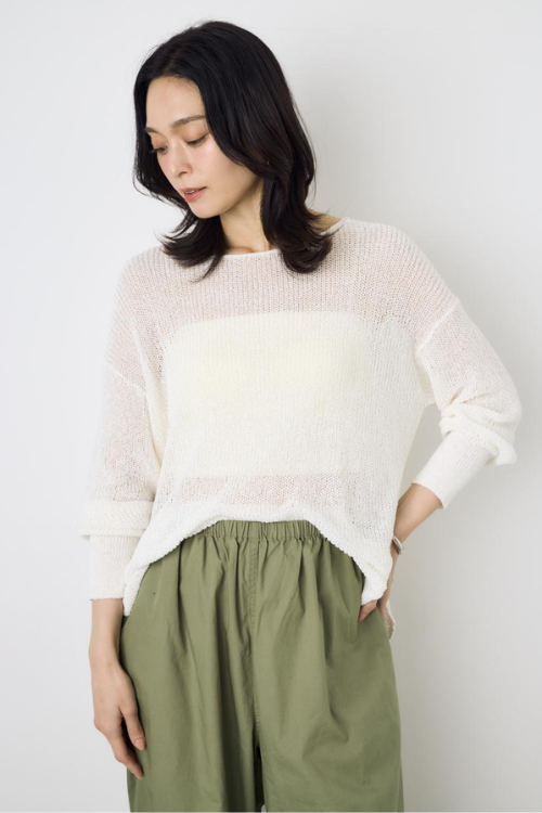 抜け感のあるメッシュ素材で軽やかな印象に仕上がる、メッシュボーダーニットです。