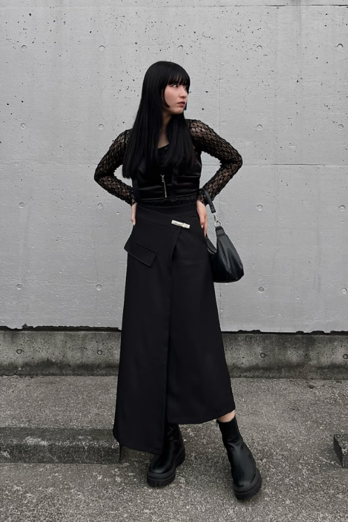 シックな装いにモード感たっぷりの、個性的で魅力的なコーデになっていますね。