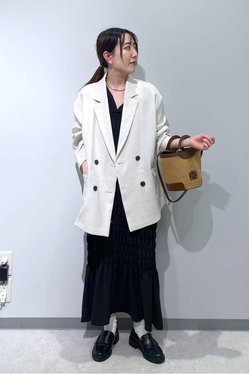 ゆったりとしたシルエットでリラックス感がうまれ、都会的ながら海辺を散歩していそうな雰囲気も感じられますね。