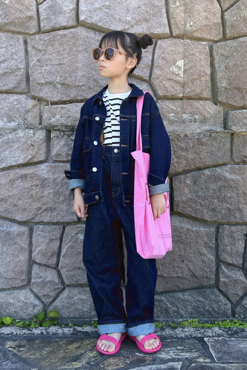 ジーンズのセットアップに合わせた差し色のピンクがよく映えて、コントラストも目を引くおしゃれコーデになっていますね。