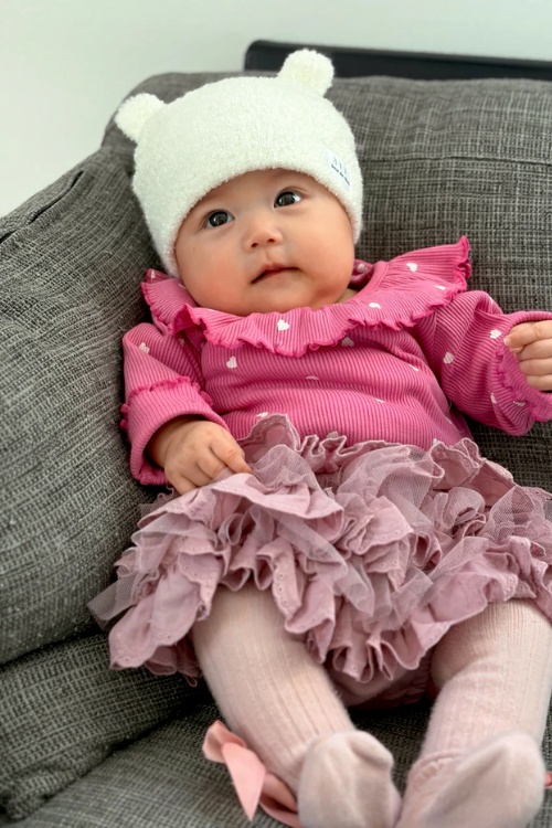 一度は着せたいフリフリのお洋服に、動物の耳がついた帽子が存在感を示しています。
