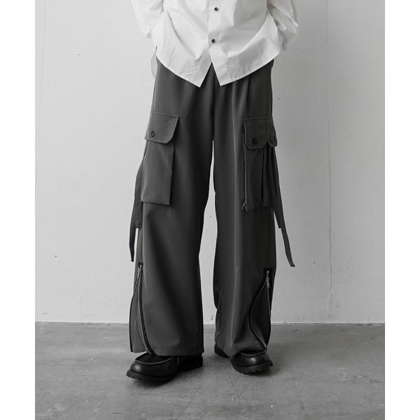サイドのジップを閉めれば、裾がすぼまったテーパードシルエットになる2WAY仕様。