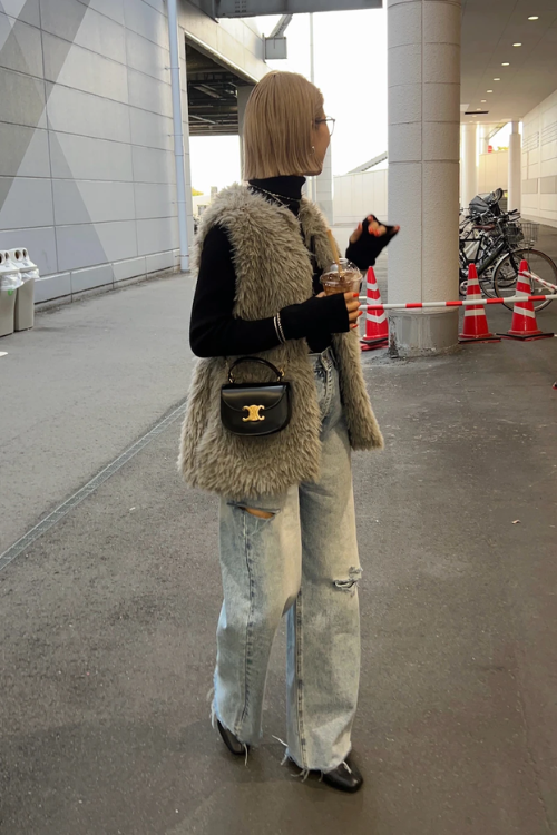 男女やコーデに左右されず、セリーヌ独特の雰囲気がプラスされていますね。