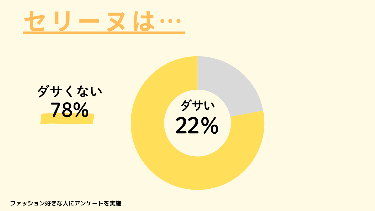 セリーヌがダサいのかダサくないのか、男女50名にアンケートをとりました。