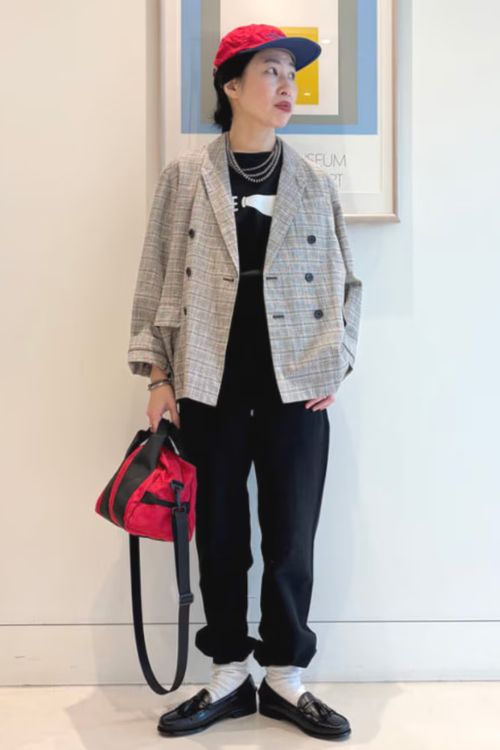 大人が着るなら、オーバーサイズではなくジャストフィットを選び、スラックスなどきれいめアイテムとあわせるとよいでしょう。