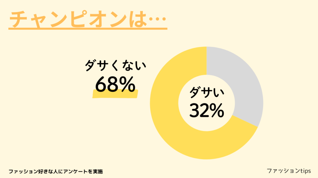 今回はチャンピオンがダサいのかダサくないのか、アンケートを集計しました。