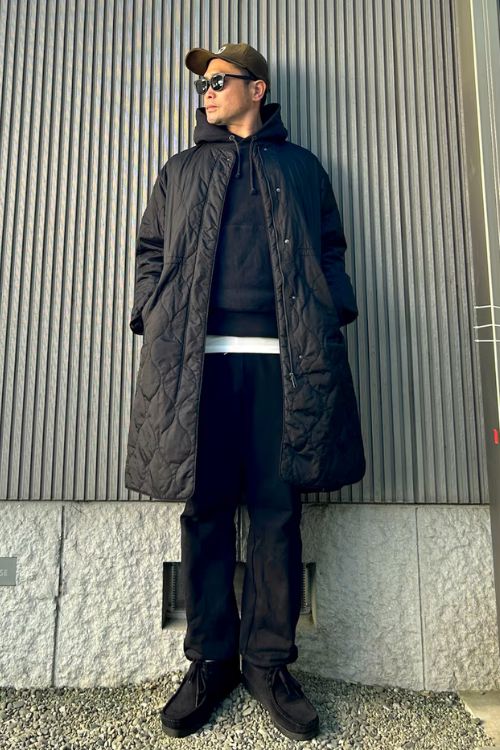 シンプルなロゴ刺繍のみのロング丈だからラフになりすぎず、落ち着いたカジュアルスタイルにぴったりです。