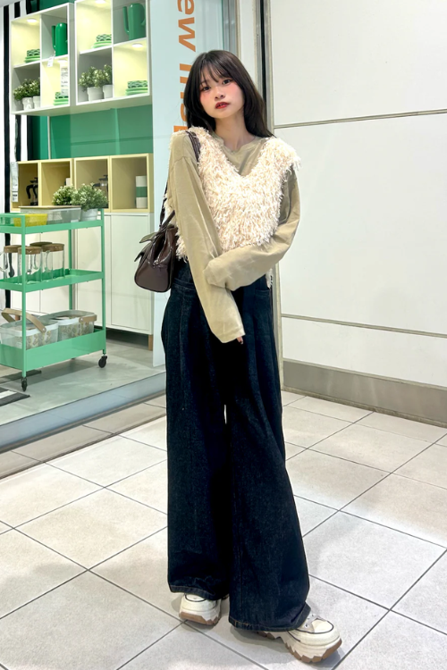 ゆったりとしたリラクシーな印象を受ける一方で、だらしなさなどは感じず上品なコーデに仕上がっていますね。