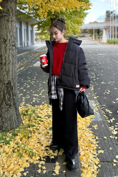 シンプルで落ち着いた色味ながら、主役になるコートがとてもよく映えています。