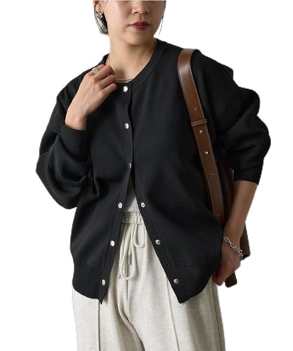 シンプルなデザインで、デコルテや顔周りをすっきりと見せてくれる、エステルヤーンカーディガンです。
