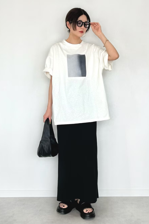 カジュアルなモノトーンコーデながら、どこか都会的でモードな印象になっています。