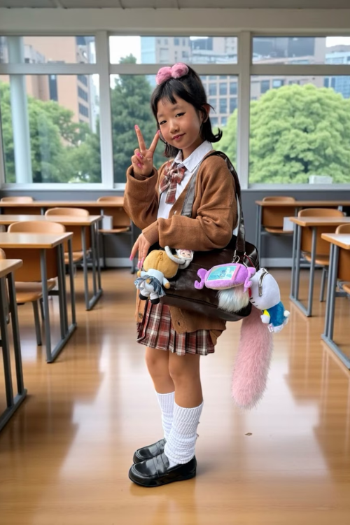 ちょっと背伸びをした女子高生スタイルも、ばっちり決まっています。