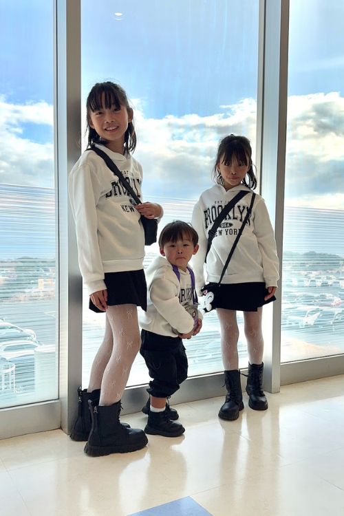 サイズ展開が豊富なので、年が離れた3きょうだいでも可愛くおそろいコーデが完成していますよ。