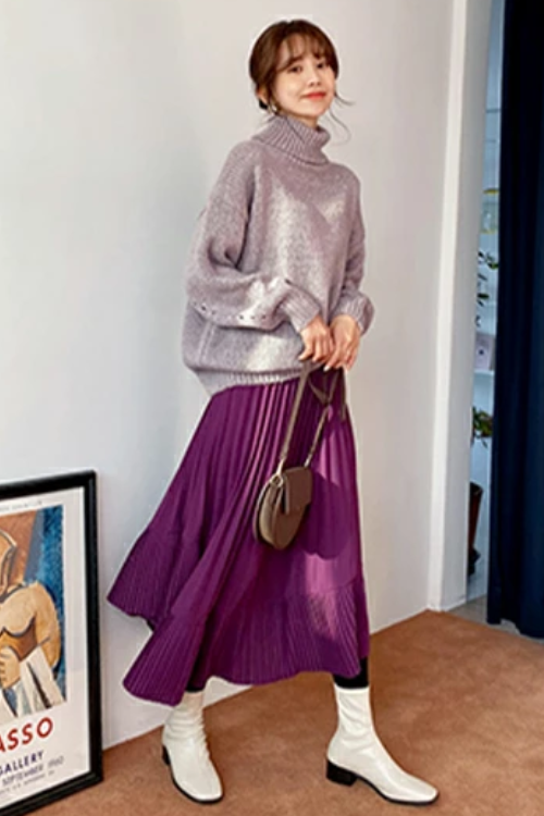 切り返しデザインが個性的でおしゃれな雰囲気を生み出す、プリーツロングスカートです。