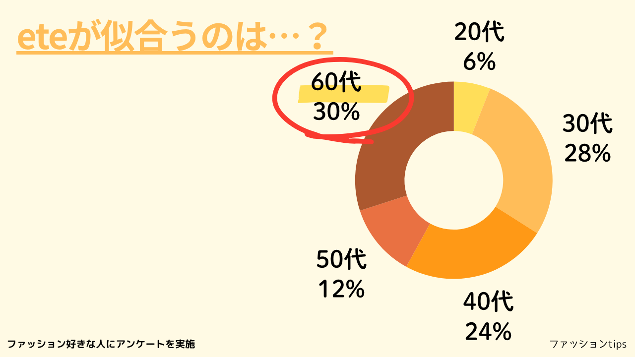 今回は、eteがどの年齢層まで似合うのか、アンケートをもとに調査しました。