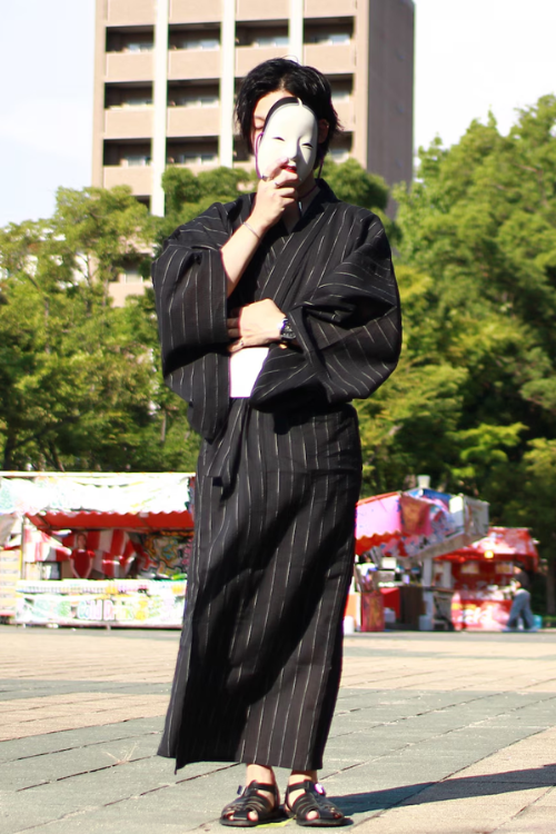 意外な組み合わせですが、浴衣と合わせても涼しげで、ワンランク上のおしゃれコーディネートになっています。