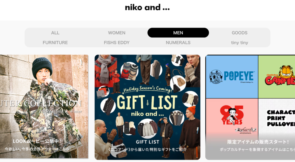 niko and …は、リラックス感とナチュラルな雰囲気を重視した、ゆったりとしたカジュアルスタイルが特徴のブランドです。