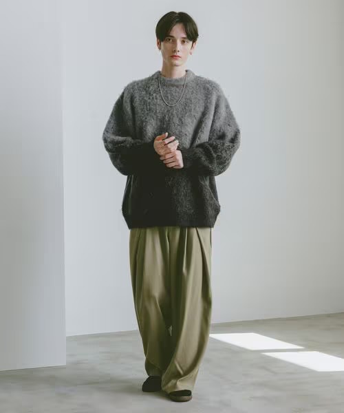 柔らかな色合いと極端なゆるシルエットが特徴で、親しみやすいカジュアルスタイルが簡単に完成します。