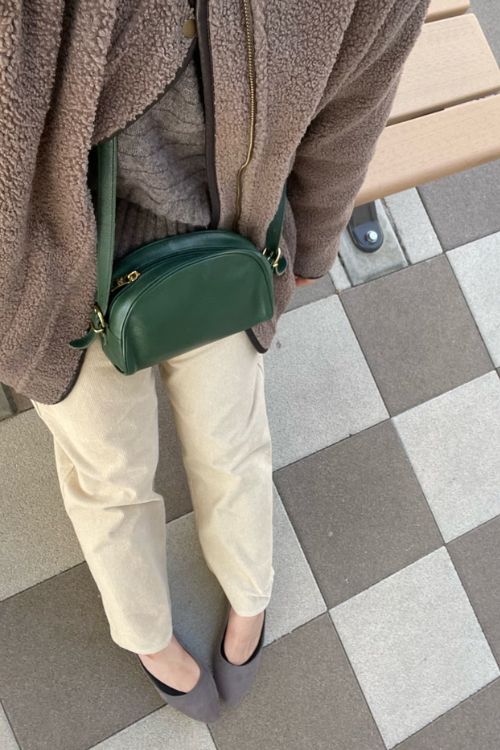 ころんとした半円のフォルムがかわいらしいショルダーバッグです。