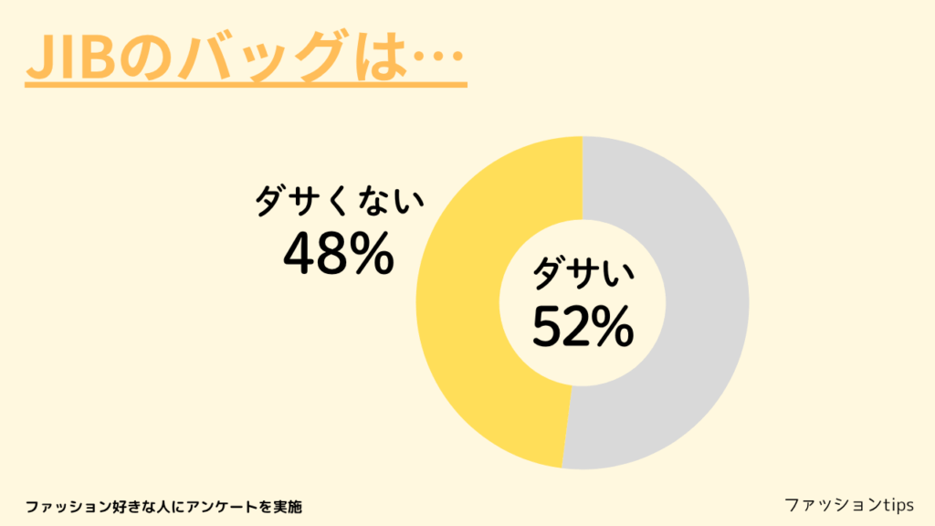 JIBのバッグはダサいのかダサくないのかアンケートを実施し、20代から60代の男女50人から回答を得ました。