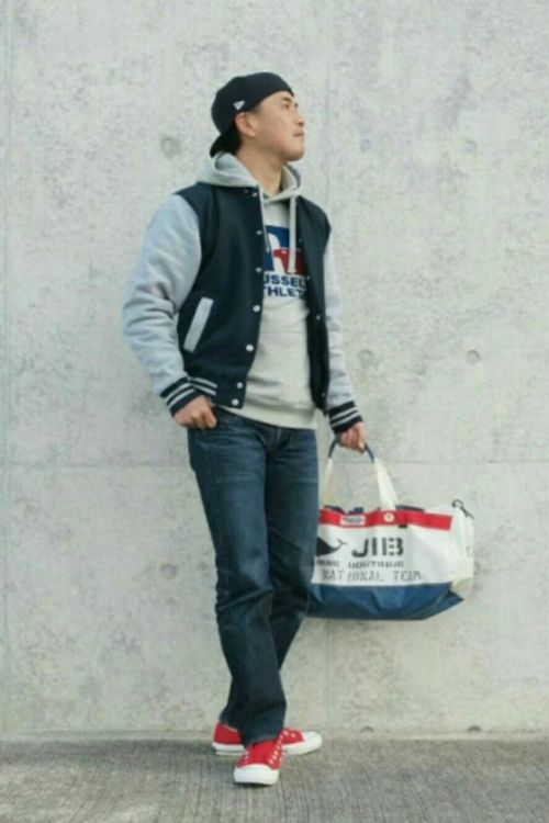バッグのカラーリングがパーカーやシューズとリンクしていて、コーデにまとまりが感じられますね。