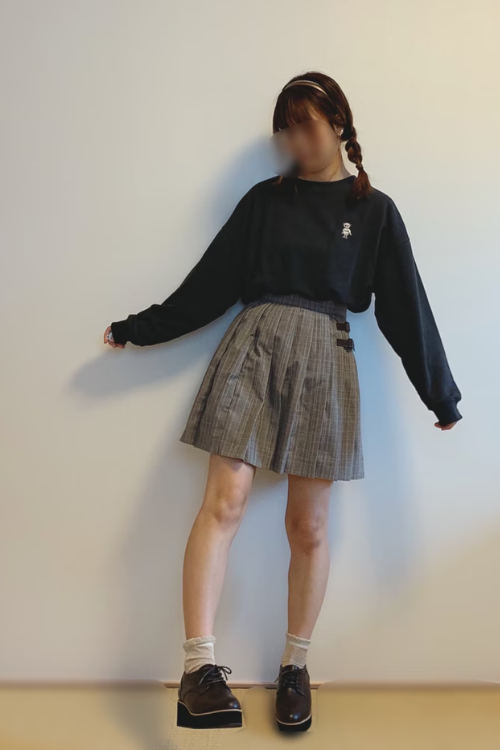 小物類がうまく落ち着いた存在感になっており、よりトップスが映えていますね。