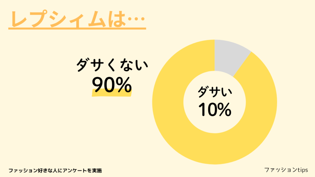 レプシィムはダサいのかダサくないのかアンケートを実施し、20代から60代の男女50人から回答を得ました。