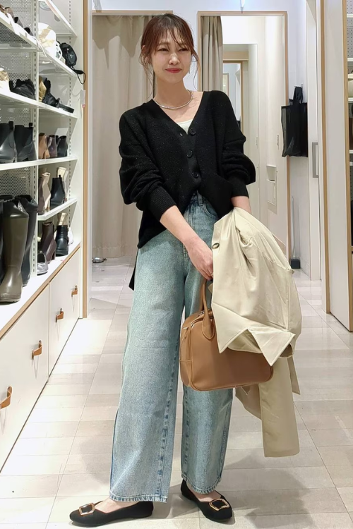 シンプルながらひとつひとつのアイテムが上品なので、ジーンズもカジュアルすぎず女性らしさもあります。