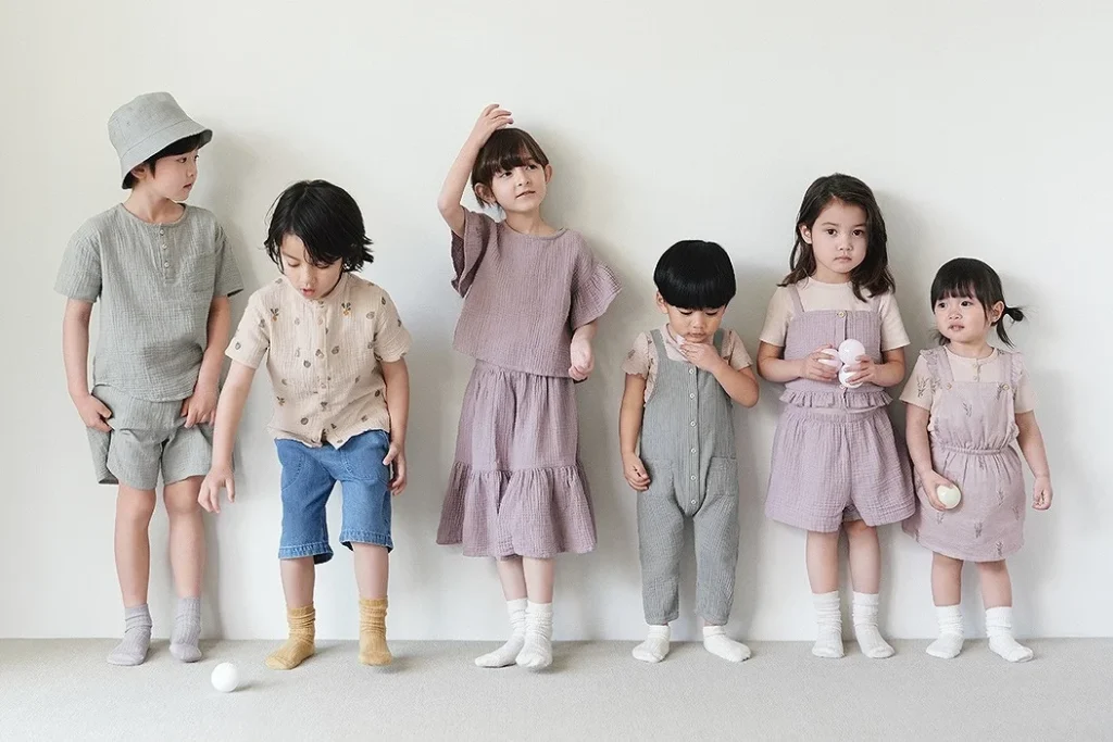 少しゆったりしたシルエットやトレンドの色使いが特徴で、保育園スタイルをグッと今風に格上げしてくれます。
