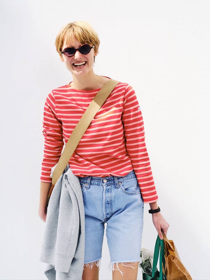 赤やネイビーが差し色になった、シンプルだけど洗練されたフレンチマリンスタイルの代表格といわれています。