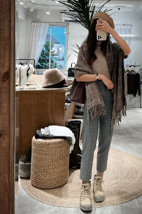 ボリュームのあるファッションにごつめの靴を合わせると、少ししつこい印象を与えてしまうかも…。