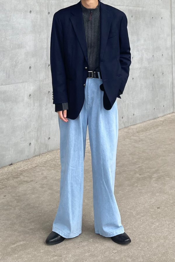 ターゲット層が中年向けなので、その年代の人なら余裕感のある高品質で流行性のないデザインでダサくなく着られます。JAZZ柄の刺繍のダンガリーシャツとストレートパンツが合います。