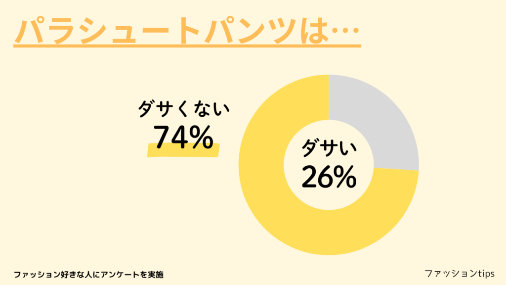 今回はパラシュートパンツがダサいのかダサくないのか、アンケートを集計しました。