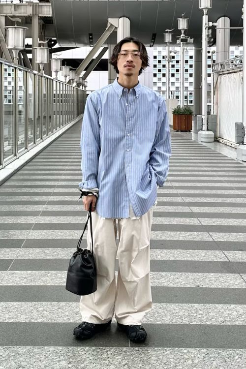 ボリューミーなフォルムなので、トップスのサイズ感を工夫するなど全体のバランスに注意するとよいでしょう。
