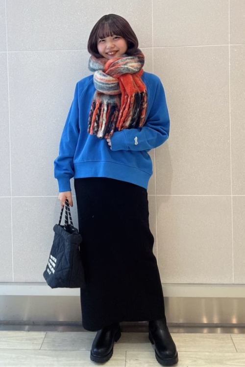 顔周りにボリューミーに巻かれたマフラーで、小顔効果もプラスされています♪