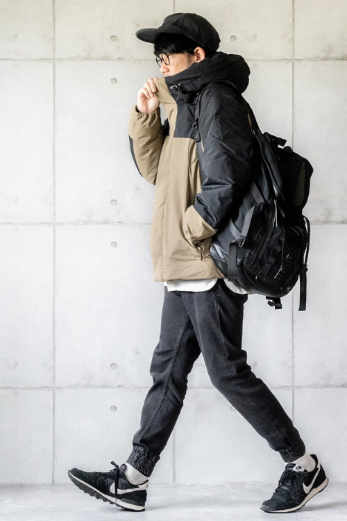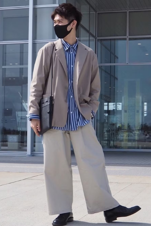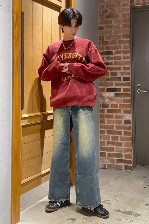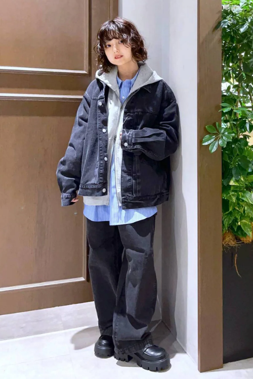 オーバーサイズめのアイテムとごつめの靴が、ハンサムさを表現しています。
