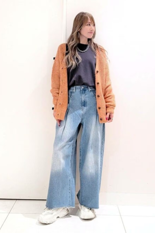 ジーンズを軸に、季節感のあるトップスやコラボアイテムなど、幅広く展開しています。