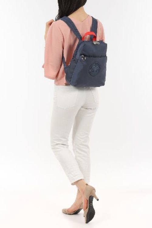 表生地と同系色のブランドロゴ刺繍がさりげないアクセントで、大人のカジュアルスタイルに似合います。