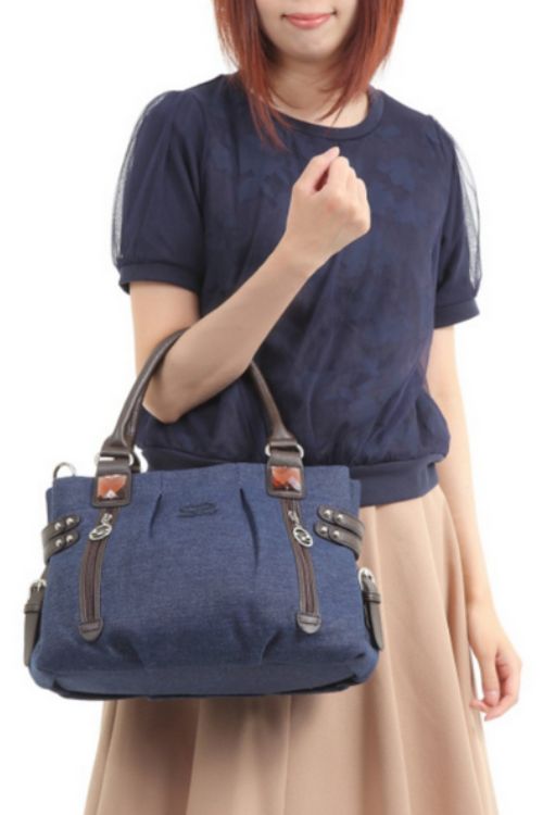 手提げ・ショルダーバッグの2WAYで使えるデニム地のハンドバッグです。