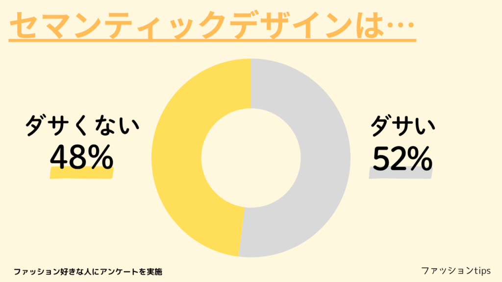 セマンティックデザインはダサいのかダサくないのかアンケートを実施し、20代から60代の男女50人から回答を得ました。