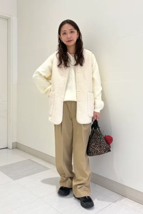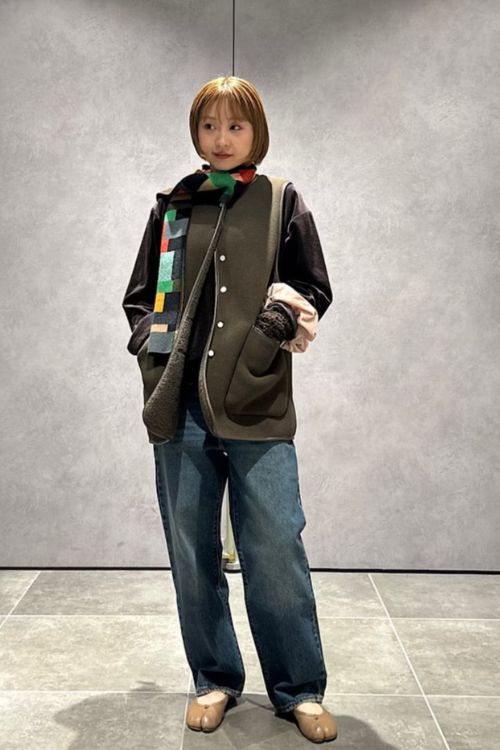 アームホールにゆとりがあるから、厚手のインナーをレイヤードしてももたつきません。