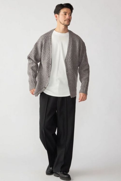 おすすめ男性コーデ:シャギー レイヤード カーディガン